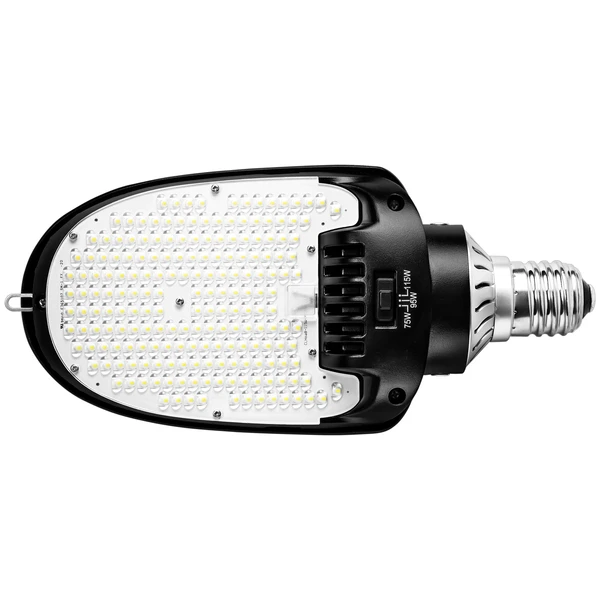 This LED HID retrofit not only excels in lighting distribution and efficiency but also provides 3 wattage selections with 3 lumen outputs. A convenient DIP switch on its body allows you to select from 75W, 95W, and 115W, making this 3-in-1 bulb perfect for brighter energy-efficient illumination. It also provides improved visibility during nighttime hours with a maximum of 16,100 lumens of daylight white light.