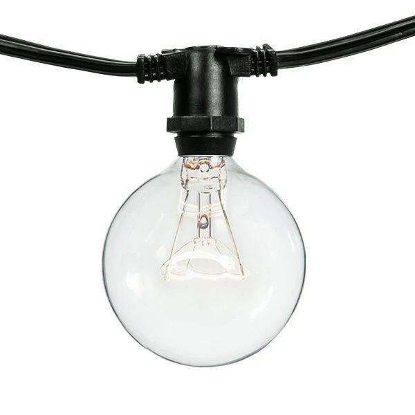Each bulb socket includes a candelabra base compatible with incandescent or LED bulbs and is spaced 18 inches apart with a total of 15 sockets per string. Connect up to 4 stringers for a maximum run of 960 watts. Complete this PLT Solutions stringer with vintage bulbs to a add whimsical touch to outdoor parties, weddings, and barbeques.