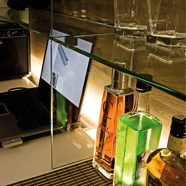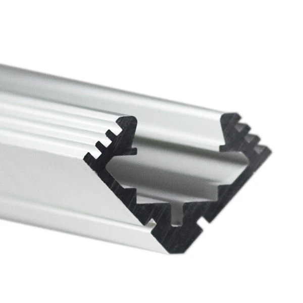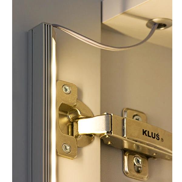 Klus Design’s LED Profiles are an innovative way to create your own light fixtures with LED Strip Light. Klus A04023A_2 aluminum mounting channels are used to hold LED Strip Light and allow you to create your own custom LED low voltage lighting scheme. The 45 ALU channel profile is designed for surface mount applications. This profile sets the internal tape light to a 45-degree angle and is perfect for corners or edge lighting. The lighting angle is suitable for either a backdrop light or fore lighting and can be nestled into most grooves as a hidden lighting fixture. This makes the 45 ALU channel a beautiful choice for displays and cabinet lighting but doesn’t rule out window, mirror, or rafter lighting either.