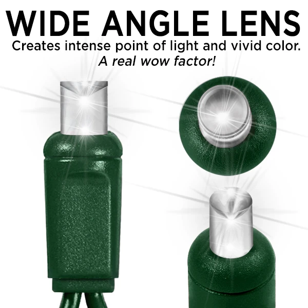 This stringer’s clear LED bulbs emit a neutral, pure-white hue that is neither cool nor warm, providing a brightness that complements any seasonal or year-round outdoor lighting display. Designed with a concave lens, these wide-angle bulbs are 25% brighter than standard-shaped mini lights and shine equally brilliant from any viewing angle. For a seamless look, wrap these green-wire lights around trees, garlands, vines, and other greenery.