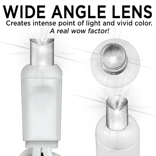 This stringer’s bulbs emit a neutral, pure-white hue that is neither cool nor warm, providing a brightness that complements any seasonal or year-round outdoor lighting display. Designed with a concave lens, these wide-angle bulbs are 25% brighter than standard-shaped mini lights and shine equally brilliant from any viewing angle. For a seamless look, wrap these white-wire lights around buildings, home exteriors or interiors, and other white-finish surfaces.