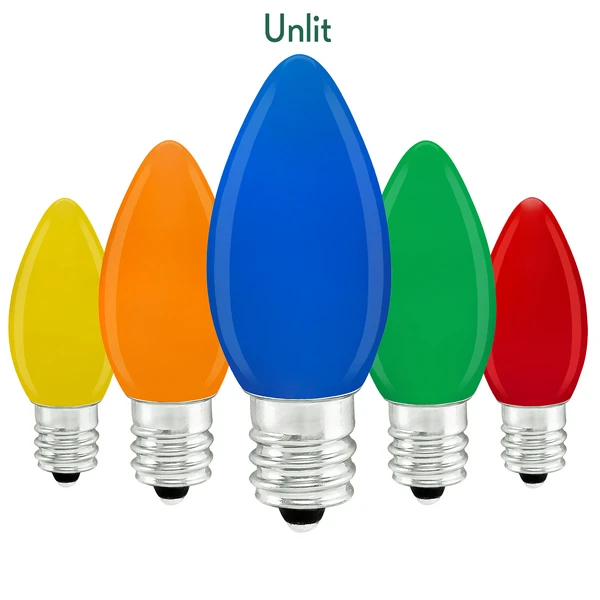While visually identical to retro incandescents, these replacement LED C7 bulbs cut costs on energy usage: They outlast incandescent C7s while consuming less than one watt each, lowering seasonal electric bills and replacement costs.