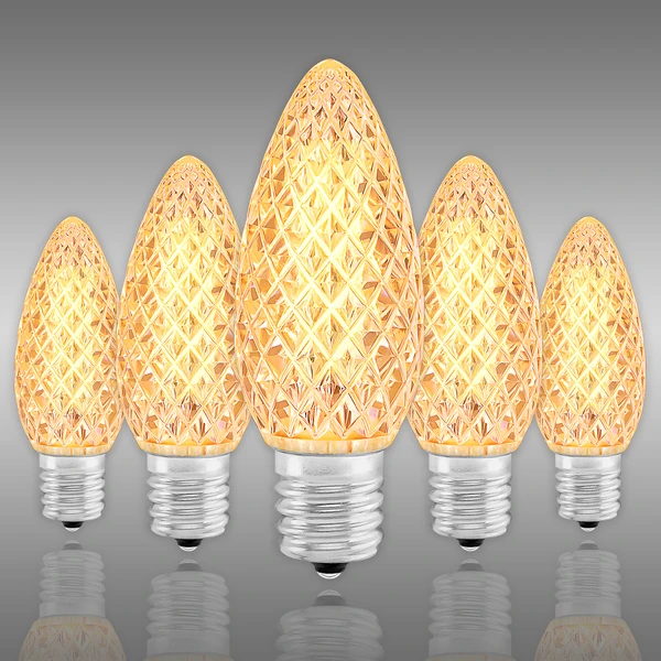 While visually identical to retro incandescents, these replacement LED C9 bulbs cut costs on energy usage: They outlast incandescent C9s while consuming less than one watt each, lowering seasonal electric bills and replacement costs.
